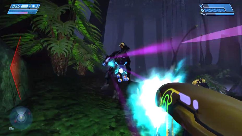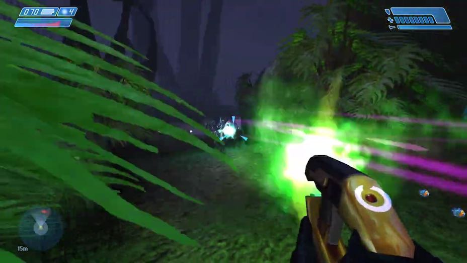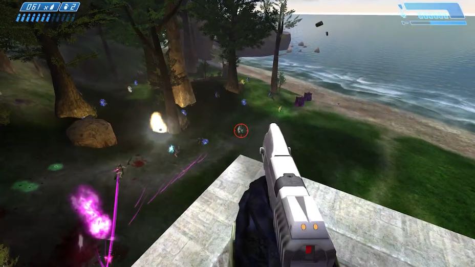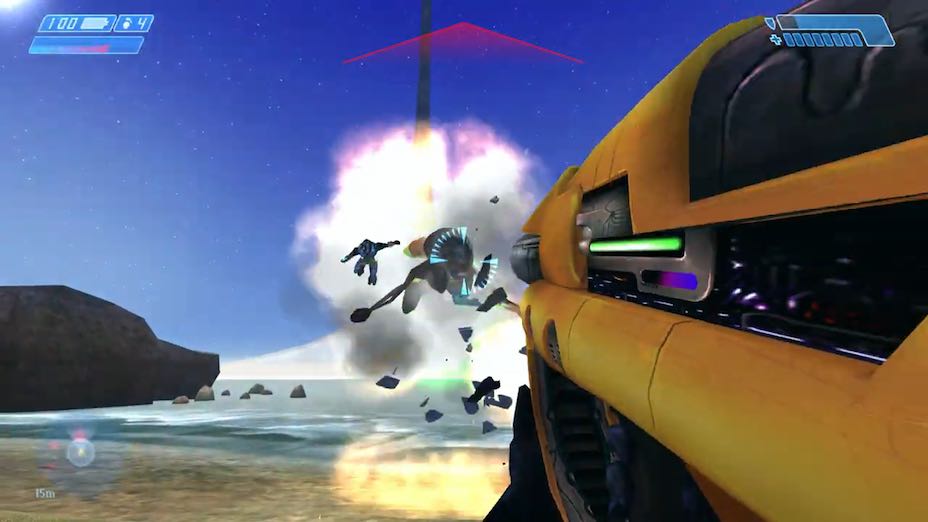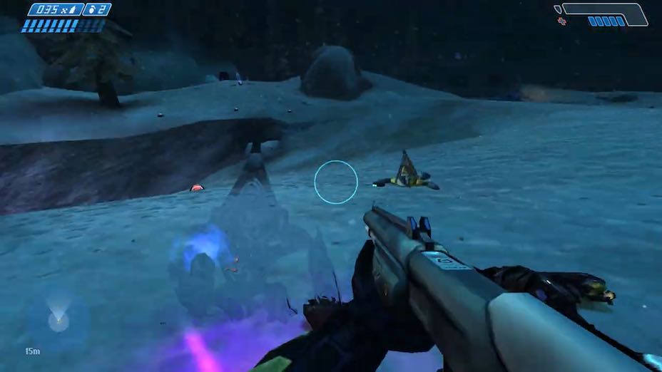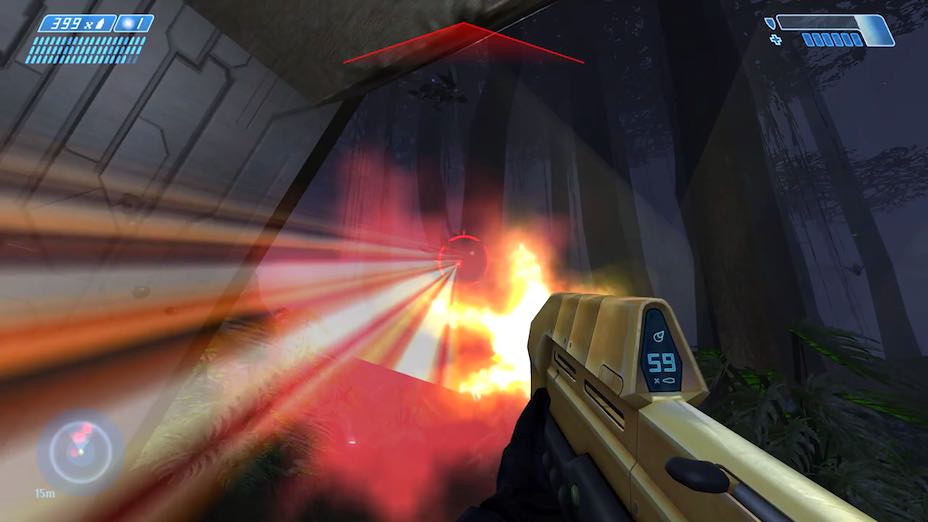 Long-time fans of the series might well be aware that the flamethrower was originally intended to be part of CE but was cut for time. However there are quite a few elements that were completed and were on the disc in 2001, such as the models and first person animations. Gearbox then finished the remaining work when they added it into multiplayer on Halo PC.